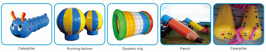 There're many inflatable fun sport games, such as inflatable caterpillar, running balloon, dynamic ring, pencil, etc., and can be customized.